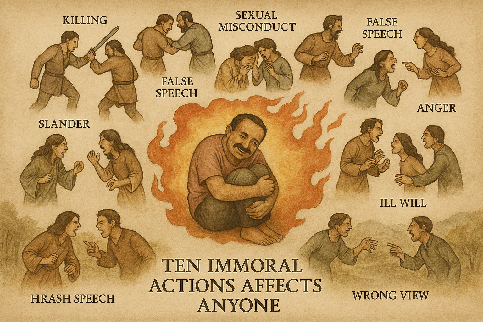 To achieve Jhana (deep meditative absorption), one must cultivate moral discipline and avoid actions that create mental disturbances. Here are 10 immoral deeds that should be avoided: